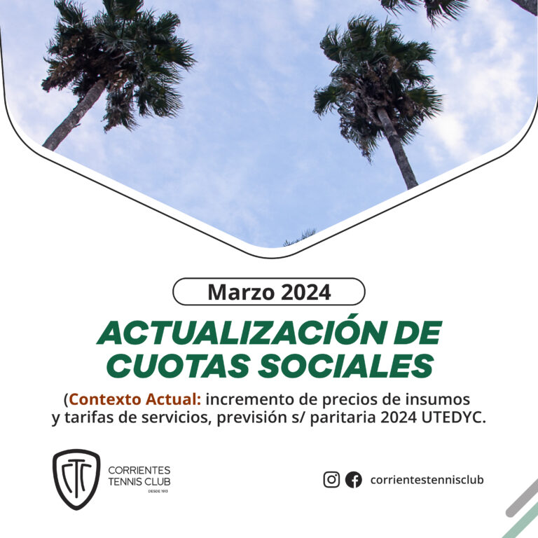 Las cuotas sociales de MARZO 2024 tendrán una actualización del 20% con el objetivo de sostener la capacidad de hacer frente a los compromisos mensuales de la operatoria del club.